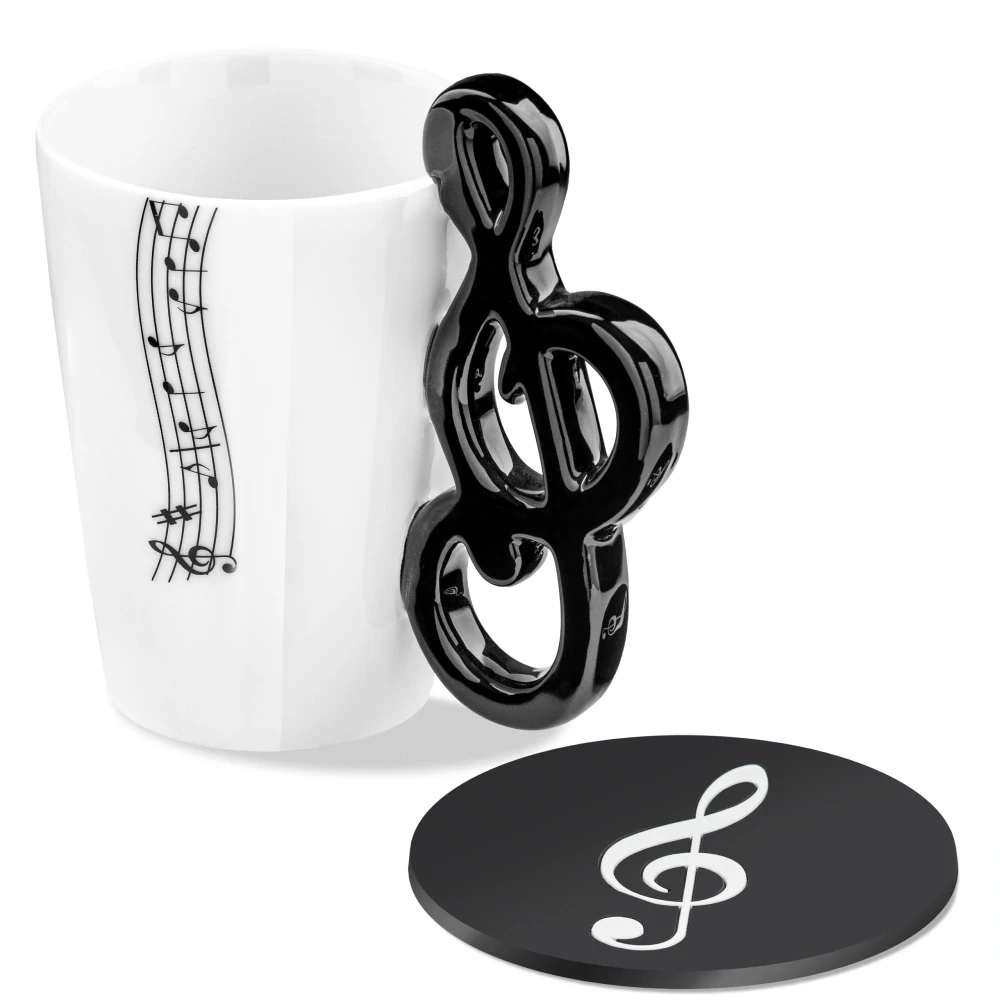 Součástí setu je keramický hrnek s uchem ve tvaru houslového klíče a silikonový podtácek s hudebním motivem. Tato kombinace vytváří harmonický celek, který se skvěle hodí na ranní kávu, odpolední čaj i chvíle odpočinku s oblíbenou melodií. Každý doušek tak může být o něco příjemnější a každodenní pauza o něco nápaditější.